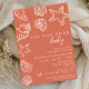 Host the perfect beach baby shower with this beautifully designed “Sea You Soon” baby shower invitation. Featuring hand-drawn white seashells, starfish, and ocean life illustrations, this editable invitation sets a warm coastal tone with its deep peach terracotta coral background and elegant white script font.