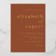 Invite family and friends to your wedding with this customisable gold foil pressed invitation. It features simple serif typography and cursive script on a terracotta background. This minimalist invitation is perfect for any wedding season or theme. Personalise this modern invitation by adding your wedding details. This gold foil wedding invitation is available in other foil finishes.