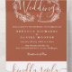 All in one wedding invitation featuring pretty string lights, hand-drawn floral garland and chic typography on a terracotta background. The invitation includes a perforated RSVP with your wedding website QR code and details. Designed by Thisisnotme©
