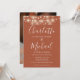 Featuring pretty string lights and signature style names, this elegant wedding invitation can be personalised with your wedding day details in chic white lettering on a terracotta background with your chosen photo on the reverse. Designed by Thisisnotme©