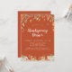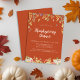 This charming Thanksgiving Dinner invitation showcases whimsical watercolor autumn leaves and pumpkins against an Autumn green backdrop. Use the Design Tools to personalise it. Also available as digital download!