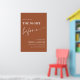 This beautifully crafted sign sets the perfect tone for your pre-wedding celebration, featuring a warm terracotta backdrop that brings a touch of rustic elegance and charm to your event. Made from high-quality cardstock or poster board, this sign offers durability and a polished finish, ensuring it stands out as a key element of your decor. The clear, crisp lettering in white ensures readability and enhances the overall aesthetic. Customise the sign with the couple’s names, rehearsal dinner date, location, and any other details to add a personal touch that reflects your unique style.