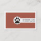 Terracotta Vet/Veterinary Clinic, paw minimalist business cards that features a black paw on a white circle. Terracotta background with white borders. A great, feminine design for veterinarians or pet clinic/hospital services.
