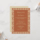 Vintage style boho wedding invitation with decorative frame and elegant serif and san serif font combination in soft cream on light terracotta background at the front, and light cream background at the back with couple initials