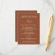 This minimalist wedding schedule card features warm terracotta tones with subtle leaf accents—perfect for outlining your weekend events, from welcome gatherings to the farewell brunch. A stylish choice for boho, desert, or fall weddings.