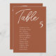 Modern Burnt Orange Wedding Table Seating Chart Cards are the perfect finishing touch for your wedding reception. Guide your guests to their seats with this unique seating chart. The cards are perfect for hanging or displaying on a board or wall. The design features a minimal script font with elegant san serif in white on a burnt orange background. The design is printed on both sides.