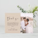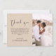 Wedding Thank You Cards that have a photo on the front and back. The Thank you cards contain a modern hand lettered cursive script typography that are elegant, simple and modern to use after you wedding day celebration.