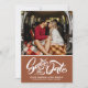 Announce your wedding to family and friends with this whimsical photo save the date announcement card. This whimsical save the date card features white hand-lettered script on a terracotta background. Personalise this script save the card card by adding names, wedding date and other details. This terracotta save the date announcement is available in other cardstock.