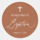 Terracotta White Cross Boy Baptism Round Sticker