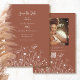 This terracotta background with a white wildflower floral is minimal and modern. Your photo on the back is filtered for an elegant ambience. The QR code makes it easy for your guests to get the details for your special day