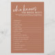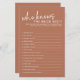 Spice up your bridal shower with the must-have Terracotta Who Know The Bride Best Bridal Shower Game! This minimalist game adds modern flair to any bridal shower with its clean, contemporary design. With thoughtful prompts to reveal the bride's personality and preferences, this game encourages laughter and friendly competition between guests. The bride will be delighted to discover who pays closest attention to the little details that make her unique.