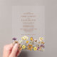 Set the tone for your wedding with this elegant Terracotta Wildflower Boho Fall Acrylic Wedding Invitation. Featuring delicate watercolor wildflowers in warm fall shades—terracotta, burnt orange, and golden yellow—blooming gently at the bottom, this invitation is printed on clear acrylic for a modern, sophisticated look.
