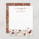 Terracotta Wildflower Message Card. Create a heartfelt keepsake with this Butterfly Boho A Message for the Mum-to-Be Enclosure Card, designed for guests to share their love, advice, and encouragement. Featuring a delicate arrangement of vintage wildflowers, dried grasses, and soft sage green foliage, this card exudes warmth and charm. The elegant terracotta script adds a refined touch, while the back is adorned with a coordinating pattern on a terracotta background for a polished, cohesive look. This card is a meaningful addition to your baby shower and a beautiful way to collect cherished words and memories. Give the mum-to-be a gift she’ll treasure forever!