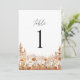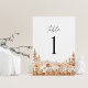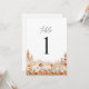 This terracotta wildflower table number features a refined serif numeral paired with soft hand-painted florals inspired by mountain meadows.