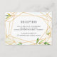 Designed to coordinate with our Terrarium wedding collection, this elegant reception enclosure card features a golden geometric border accented with sprigs of green watercolor leaves and foliage. Personalise with your reception details, timing, venue and address.