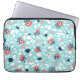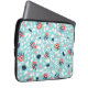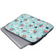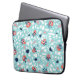Fun terrazzo laptop sleeve with a geometric seamless pattern with weird eyes on some of the abstract marble stones in coral and blue colours.
