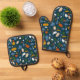 Terrazzo Pattern Blue Oven Mitt & Pot Holder Set