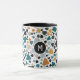 A terrazzo style design featuring random shapes in a range of sizes and colours. Personalise with an initial.