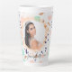 White background with multi coloredterrazzo pattern in blush, mint, beige and blue. Faux glitter, sparkles around the photo. Persnalize and add a photo and name. The name is written with a hand lettered style script with swashes.