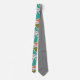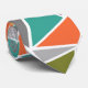 This necktie has a mid-century modern design of triangles making a terrazzo floor look, in greys, turquoise, orange, gold, and green.