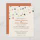 Keep your costs down with this less expensive wedding invite option. Modelled on Italian terrazzo tile this wedding invitation has a fun and festive confetti flake look in warm earth tones with a splash of colour. These invites have a clean and modern look.