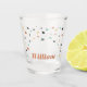 Create a personalised gift for wedding party members or for any occasion. This shot glass features a design inspired by Italian terrazzo tile in warm earth tones with a splash of colour. Add a name in bold, modern rust orange coloured lettering.
