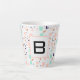 White background with multi coloredterrazzo pattern in blush, mint, beige and blue. Personalise and add your monogram initial, letter.