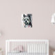 Terrier Pup Portrait, Whimsical, Grey, Black, and white, with a pops of Pink Red orange and teal.
