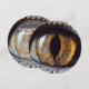 This Halloween party invitation features a unique round design with a close-up of a terrifying reptile's eyeball on the front. The eyeball is intensely detailed, with a slit-like pupil and scaly textures surrounding it, evoking the menacing gaze of a predatory creature. The eerie, yellow-green tones of the eye, combined with sharp contrasts, create a chilling focal point that immediately sets the mood for a spooky, reptile-themed event. The circular shape of the invitation emphasizes the intensity of the reptilian gaze, making the creature's eye appear as though it's watching every move.
