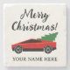 Red Tesla pickup truck hauling a Christmas tree Stone Coaster . Modern version of old vintage Chevy truck hauling a Christmas tree. Personalized gift for the holidays. Novelty Holiday decor items.