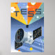 TESS Space Telescope Poster. TESS, the Transiting Exoplanet Survey Satellite, launched in 2018 to discover small planets orbiting bright stars all over the night sky. Like its predecessor, the Kepler Space Telescope, TESS identifies exoplanets by watching for tiny dips in a star's brightness caused by an orbiting planet. But unlike Kepler, which focused on a single patch of stars, TESS is conducting an expansive survey that encompasses almost the entire sky. During its two-year primary mission TESS monitored more than 200,000 pre-selected stars and detected over 1,900 exoplanet candidates. In July 2020 TESS began its first extended mission during which it continues to monitor our stellar neighbourhood and identify the planets that reside within it. The next time you look up at the stars you might think of TESS - hard at work discovering previously unknown worlds around those scattered points of light.