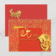 Golden Horse paper-cut style illustration with large golden "Têt" + text in Vietnamese: "tết đến xuân về" meaning "Têt comes, Spring returns" on decorated red background. Design on horizontal postcard with texts to customise in back. Matching greeting card and Li XI A7 red envelope. Perfect for Vietnamese New Year of the Horse 2026.