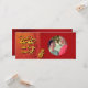 Decorated background image in orange red tones with bamboo silhouette and golden texts: wishes in Vietnamese, large 2020 and Rat paper-cut + decorated photo frame for your own photo in front and the same frame for another photo in back of the card + your message. You can easily change photos and text (font, colour, size and position) by clicking the customise button. Design on horizontal standard greeting card. Matching postcard, greeting card and more...