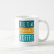 Teta Needs Coffee Mug. This cute coffee mug makes the perfect gift for any grandmother whose grandchildren call her Teta instead of Grandma. (Teta means grandmother or grandma in Arabic.) This funny coffee mug says "Teta needs coffee." It has a white background with teal / turquoise / aqua and yellow graphics.