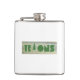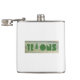 The flask itself is fine. It’s a cheap flask, obviously bought in bulk, however am prepared to overlook that. Given that it is a personalized item, I would have liked to have seen gift boxing instead of the generic packaging. Terrible printing, and/or quality. It’s a cheap, tacky vinyl. It is not cut straight and is also applied in a way that it is overhanging the bottom, causing the glue to catch on items and it will eventually roll and tear, damaging the wrap.
