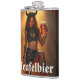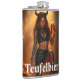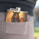 The flask itself is fine. It’s a cheap flask, obviously bought in bulk, however am prepared to overlook that. Given that it is a personalized item, I would have liked to have seen gift boxing instead of the generic packaging. Terrible printing, and/or quality. It’s a cheap, tacky vinyl. It is not cut straight and is also applied in a way that it is overhanging the bottom, causing the glue to catch on items and it will eventually roll and tear, damaging the wrap.