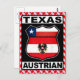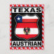 Texas Austrian design, in the style of a cool American road route sign. The text Texas Austrian is along the top and bottom, with the flag of the State of Texas and the flag of Austria inside the route sign. Great for Texans of Austrian descent, and for ex-pats in the Lone Star State.