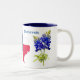 Unique mug design featuring the Bluebonnets of Texas against a white background and the Texas state outline with flag colours. The Bluebonnet flower is the state flower of Texas. In March and April, these beautiful flowers bloom in fields and freeway medians.