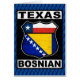 Classic US route sign style design, with the text TEXAS BOSNIAN, and the flags of the state of Texas and Bosnia Herzegovina.