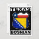 Classic US route sign style design, with the text TEXAS BOSNIAN, and the flags of the state of Texas and Bosnia Herzegovina.
