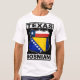 Classic US route sign style design, with the text TEXAS BOSNIAN, and the flags of the state of Texas and Bosnia Herzegovina.