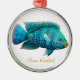 Original painting of a Carpintis or Texas cichlid by artist Carolyn McFann of Two Purriing Cats Studio printed on a quality and customisable holiday ornament for tropical aquarium fish fans.