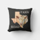 Farm and ranch roads cover the great state of Texas, and the signs marking those roads are a familiar sight. This sign combines that text with the state shape filled with a watercolor cow and wood fencing. The background is a textured mix of dark greys. Check out other options with a chicken, horse or pig. Matching products available.