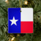 Square ornament with an image of the Texas Flag on the front and a field of Bluebonnets of the back, the Texas State Flower.