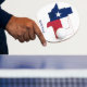 Stylish, personalised TEXAN PING PONG PADDLE showing embossed-look map outline and flag of TEXAS. The placeholder name is CUSTOMIZABLE so you can personalise with your name or text.