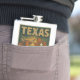 Carry a piece of the Lone Star State with you wherever you go with this Texas flask. Crafted from durable stainless steel and featuring a bold State of Texas design, this sleek pocket flask is perfect for tailgates, camping trips, weddings, or gifts for proud Texans.