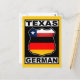 Texas German design, in the style of a cool American road route sign. The text Texas German is along the top and bottom, with the flag of the State of Texas and the flag of Germany inside the route sign. Great for Texans of German descent, and for ex-pats in the Lone Star State.