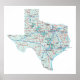 The Texas Interstate System with labelled interstates and state name in shadow.