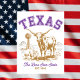 Whether you're looking for a Texas souvenir gift, a way to remember your Texas vacation, or simply a cool postcard to send to friends and family, this design embodies the rugged charm and iconic imagery of the Lone Star State.