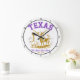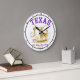 Display your Texas state pride, with this charming wall clock. It features the Lone Star State heritage, showcasing a iconic longhorn, windmill, and cactus, design. An established 1845 gift, celebrating Western history. This Texas wall clock, adds timeless rustic charm to any home. Perfect for any one.